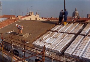 Die Dachelemte können bis zu einem Winkel von 20° betoniert werden. Bei größeren Winklen empfiehlt sich das Aufbringen von Dachlatten, auf denen die Ziegel befestigt werden können. |